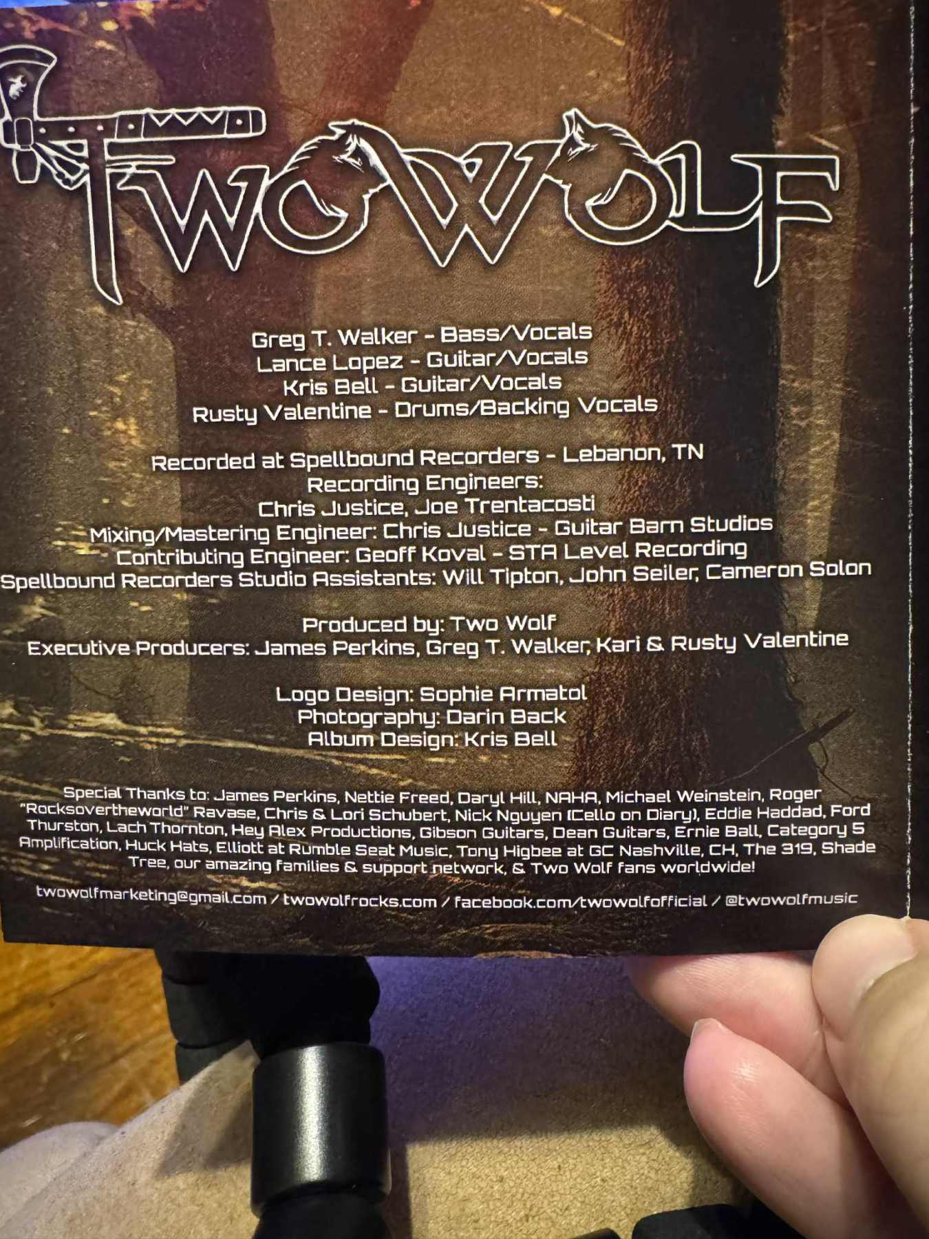 I told him how much I loved the Two Wolf album and that I bought a band shirt at the show and he said “Good!”. I then asked him if he could sign the CD and he did with my sharpie.